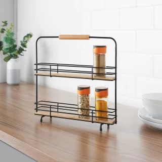 Two Tier Spice Rack with Wooden Handle.
